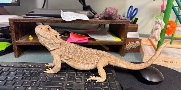 Our school pets are quite the celebrities around here! In addition to being our animal ambassador I also assist as a third person for the office as well with Cheep Cheep the parakeet helping me out at my desk throughout the day!